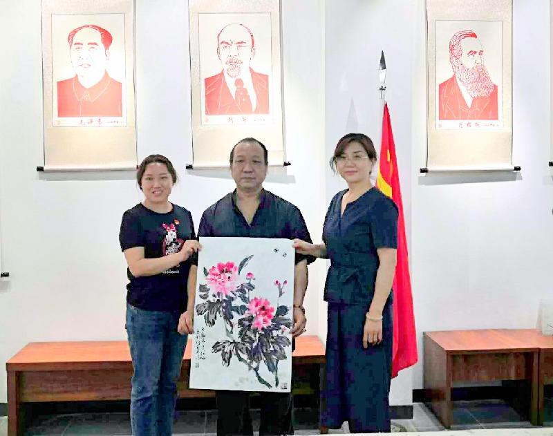 在活动现场的书画家们挥毫创作了数十幅书画作品,用手中的笔表达建党99周年的祝福。