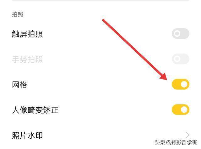 (1)水平线是平不能歪。 拍之前把摄影参考线调出来,手机设置,参考下图: