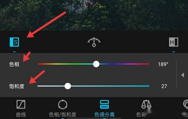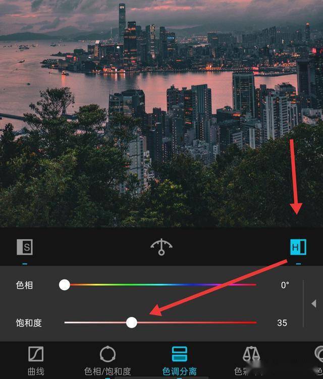 (4)色调分离,S是调整暗部的,色相调到蓝色,提高饱和度 。H是调整亮部的,色相选在橙色,提高饱和度。冷暖对比有了,保存备用。