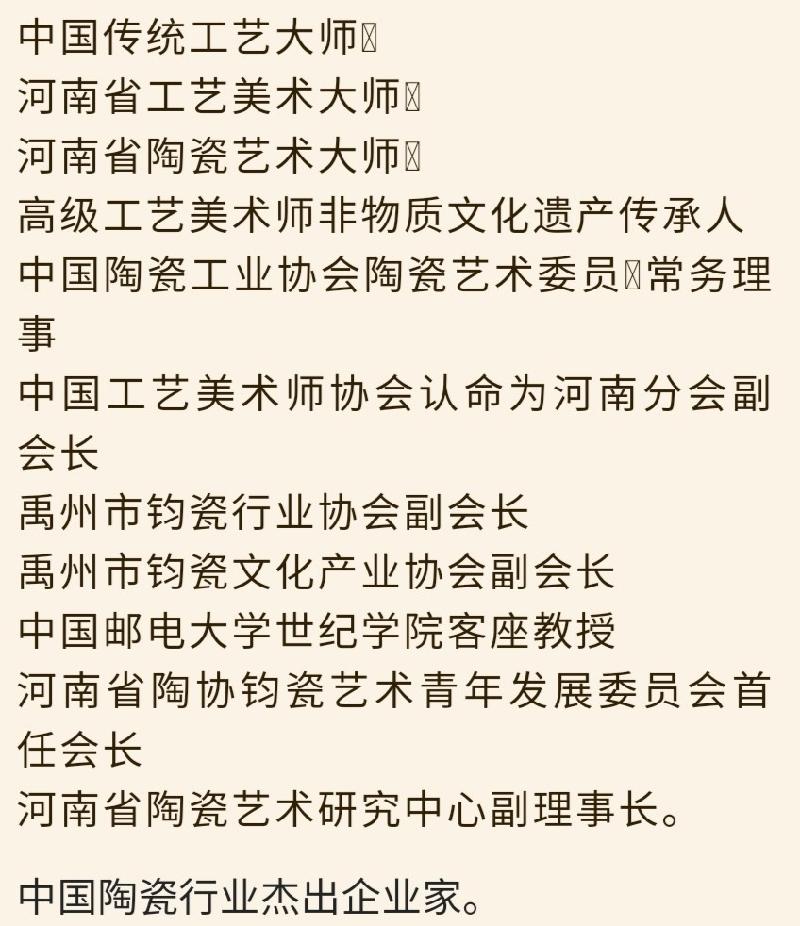 关于锦丰源钧窑: 锦丰源钧窑创建于1994年,前身为神垕镇兴泉瓷厂,于2000年改名为锦丰源钧窑。主要从事传统煤烧、柴烧、炉钧钧瓷的工艺技术研究与产品开发。秉承传统生产工艺技术标准,手工拉坯、大师制作、矿石配釉,并在此基础之上不断完善创新,完美重现共和国官窑的钧瓷神韵。在原钧瓷二厂煤烧钧瓷工艺的基础上不断创新、反复试验使原有的工艺水平又上了一个新的台阶,作品深受钧瓷爱好者和收藏家的青睐。十多个品种作为指定礼品并多次被国家外事部门选为国礼赠送给外国政要。
