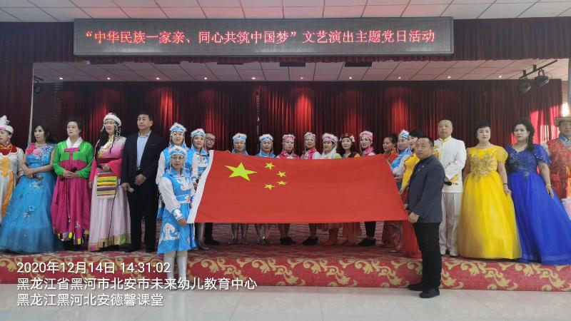 五十六个民族,五十六朵花,五十六个兄弟姐妹是一家。2020年12月14日,黑龙江黑河北安国兴、德馨2个课堂的32名志愿者,参加东北亚社区“中华民族一家亲 同心共筑中国梦”文艺汇演。