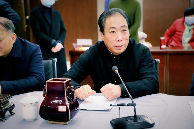 中国工艺美术大师、禹州市钧瓷行业协会会长孔相卿代表协会发言