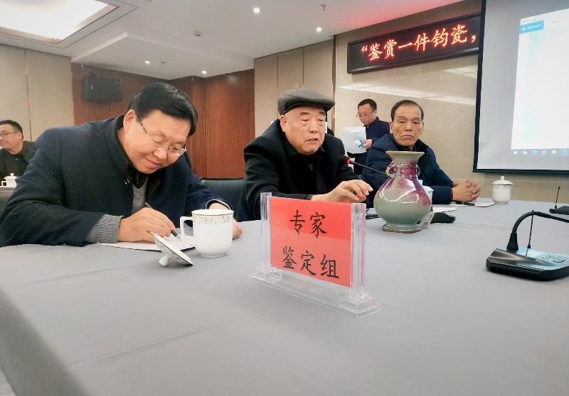 鉴定委员会专家对钧瓷藏品鉴定后交由市场评估团成员国营瓷厂厂长霍子敬、资深钧瓷藏家董耀伟、官钧堂钧瓷坊文化传媒有限公司经理张建峰、真钧堂经理刘俊有进行实地评估。