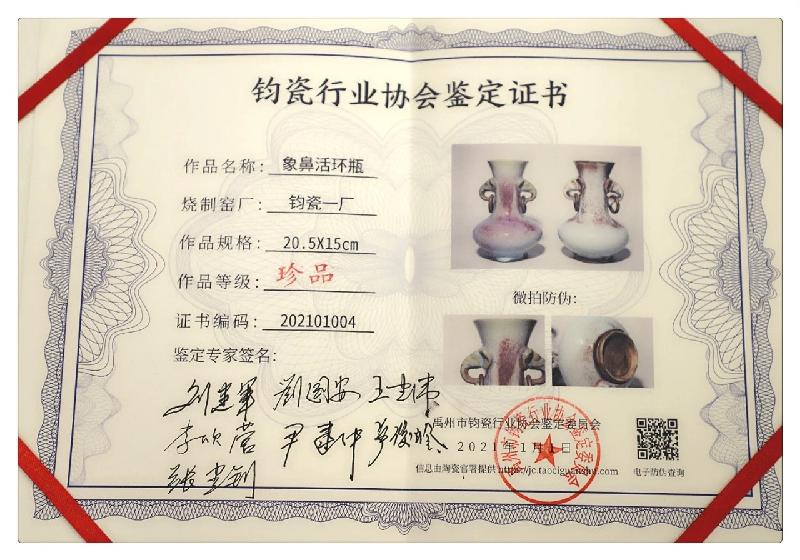鉴定会上,由收藏家携带20件钧瓷藏品交由主办方成立的鉴定委员会专家河南省钧瓷文化研究会副会长、国安钧瓷坊董事长刘国安,中国硅酸盐学会陶瓷分会理事、刘家钧窑艺术总监刘建军,中国传统工艺大师、宋元钧瓷坊总经理王建伟,中国陶瓷工业协会理事、尹家钧窑董事长尹建中,中国陶瓷协会理事、神州钧窑艺术总监李欣营,河南省工艺美术大师、凤山钧窑董事长张建钊,河南省陶瓷艺术大师、卢家世代钧窑艺术总监卢俊岭进行现场鉴定。