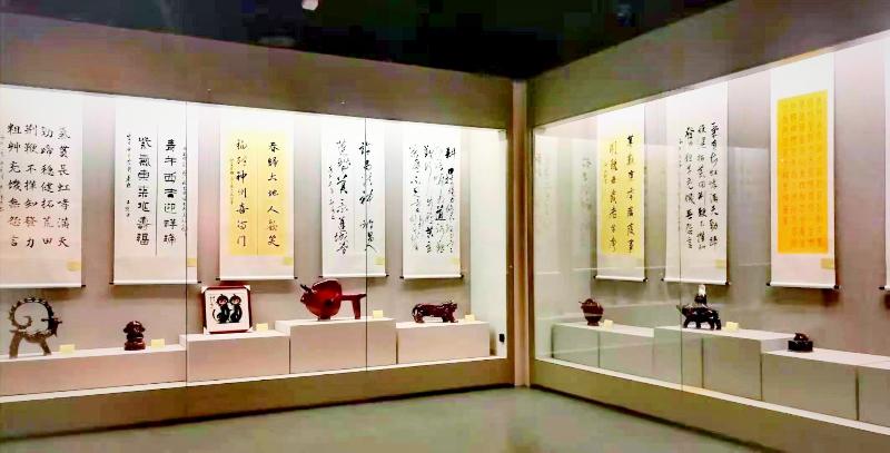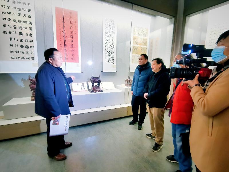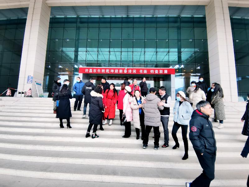 2021年1月5日上午,“牛转乾坤迎新春诗词书画钧瓷作品联展”开幕式在河南省许昌市博物馆举行,许昌市政协副主席刘瑞红、许昌市委宣传部常务副部长廖少忠、许昌市委宣传部原副部长许昌市文化产业发展促进会副会长兼秘书长王格慧、许昌市文联副主席孟蕴慧、许昌市委宣传部文艺科科长李浩等出席开幕式。