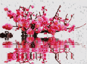 阁亭典雅朦胧现,桃柳婆娑黯淡荣。