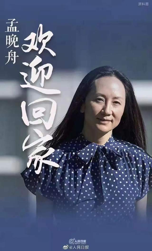 华夏包机迎孟返,温情感泪横流。自由女杰赞歌讴。彩虹牵夜路,国庆拥丹舟。
