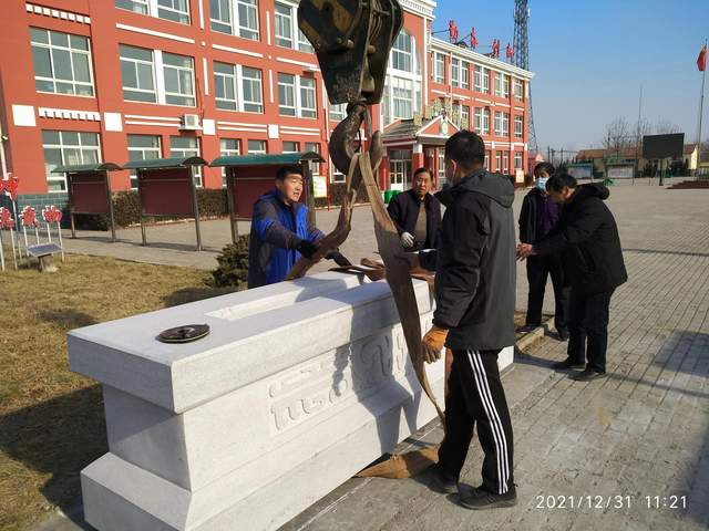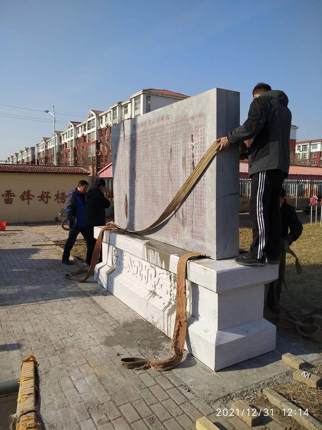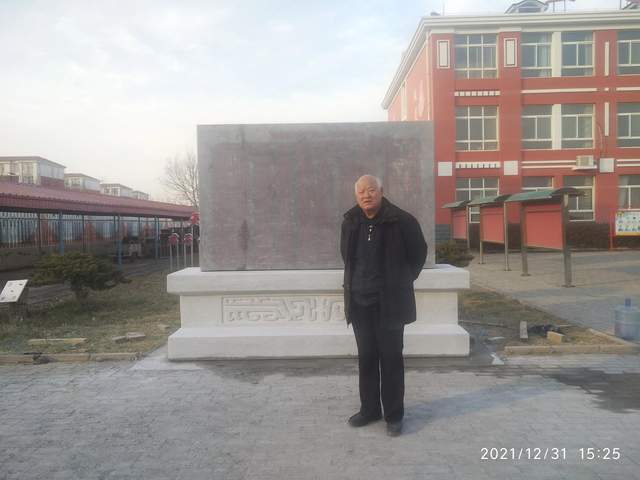 凝视石碑,影像蓦起,可以想见,这一年360多天,他用情专注,时刻牵挂着“校史碑”,多次莅临现场问询刻制进程。刻制竣工,又雇车吊装起运,亲自护送到故里校园,直到安装落成,终了夙愿。