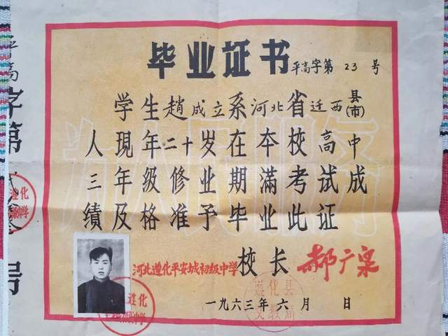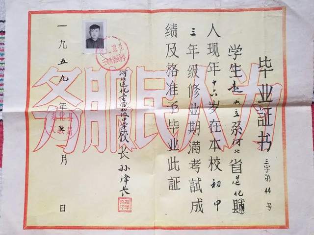 1956年高小毕业前夕,国家在三屯营城东建起一所初级中学。该我有上学的命,初中又考上了。录取通知发到手,上面写着:开学三天不交学杂费取消入学资格。这下可把妈妈急坏了,像是热锅上的蚂蚁,坐立不安。直到开学那天,手里还分文没有,急得我直哭。于是,母亲又找到了大姨妈和舅舅们,他们一起给凑了7块钱算是报上名了。在那段时期,我家里穷是出了名的。上初中时,学校一不收我学杂费,二还每月给我最高等级的助学金7元。在放学的路上,我依然延续着爱劳动的习惯,捡着柴禾,有时甚至剥庄稼叶子再用胳膊夹回家,从未空手过。