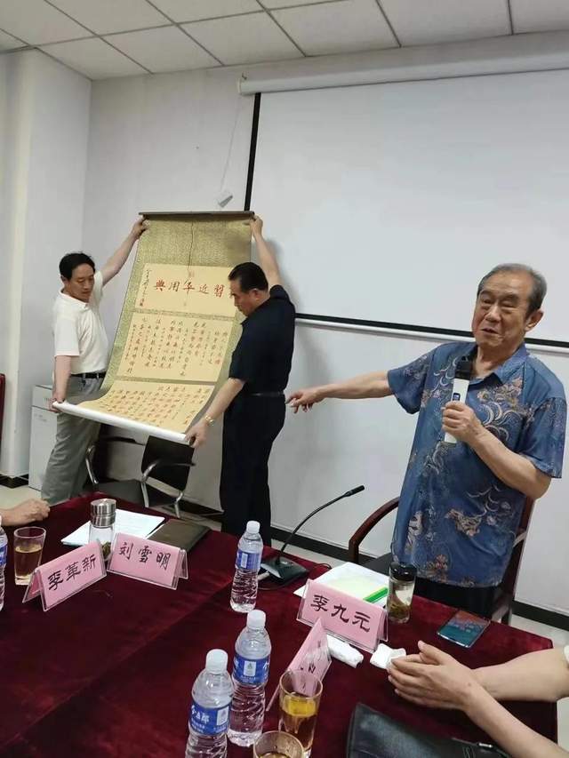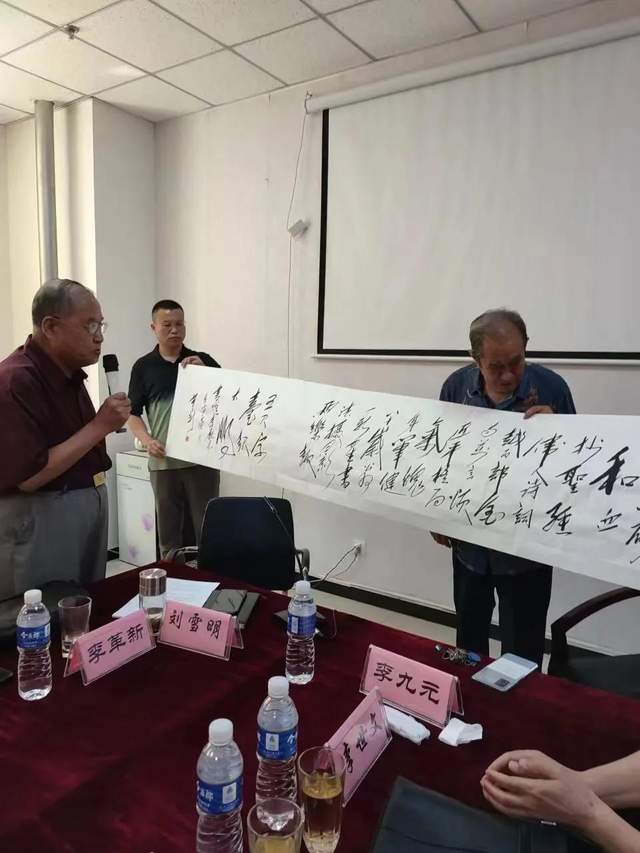 研讨会上,原石家庄市文联主席、燕赵十老书画社副社长路继舜以自己多年的书法创作体会,总结出了六大隶书创作规律,并用正、重、俊、活四个字概括了自己的书法创作风格。河北省诚信文化促进会荣誉会长,燕赵十老书画社社长李九元展示了自己的书法长卷、精品折页,并畅谈了书法创作体会。与会嘉宾还就进一步提升书法艺术的学术价值、作品的观赏价值和收藏价值等进行了讨论。