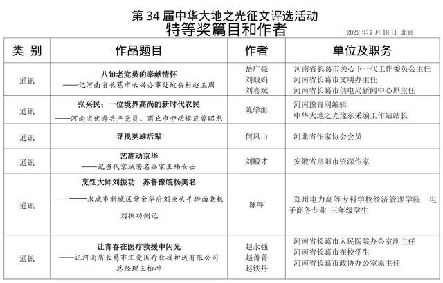 这一篇篇征文作品,一件件获奖佳作,都凝结着作者深入采访,精心写作的心血。