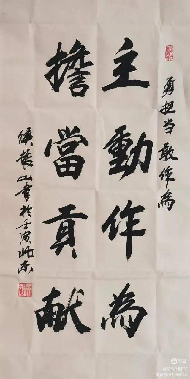 侯振山武官以他浓厚的家国情怀,不断用笔墨来书写时代金句,谱写忠党爱国之情,用以激励现代人的信念和斗志,鼓动现代人听党话,跟党走,奋发进取的豪气。他倡导让书法为新时代服务的理念。著有《中国书法行书概论》一书。他说书法,要紧跟新时代,服务新时代,唱响新时代,讴歌新时代,助力新时代。这样才能充分体现出书法的实用性和功效性,才能充分表达出书家的时代内涵和时代意境,才能展现出书法与时代相融合的、刚柔壮美的艺术魅力。编辑:孔建超