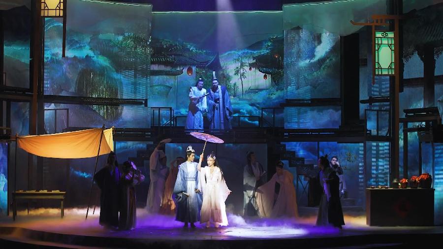 江南青翠,人间烟火,飞花令上,才子佳人,妙语连珠。鹊桥相会,双飞化蝶,万花筒中,亦幻亦真,光影浮动……音乐剧《画皮》演出展现的震撼舞美,惊艳大气;妩媚百态痴心狐妖、风流潇洒俊朗书生、青梅竹马忠心伴侣、霓裳一曲心头月光……生动人物,悉数登场。