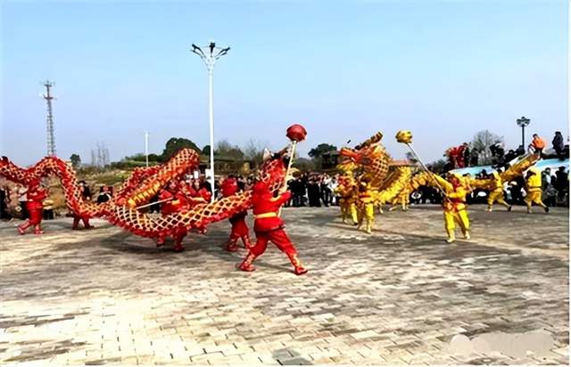 这是附近百姓嘲讽七房塆玩龙灯的顺口溜,同时反证了七房塆玩龙灯人数之多,影响之大,已是妇孺皆知之事。该塆玩花灯时间大约是正月初几至二月初,多在太和、保安、茗山、金山店等地表演。七房塆龙灯进入各个村塆时,家家户户门前鸣炮迎接,龙灯先从塆前到塆后绕一圈,然后去禾场或开阔处玩灯。由于受场地限制,不便施展,只能表演“双龙出海”等小节目。保安镇是鄂冶一带商贸重镇,人流量大且场面开阔,花灯队员可以大显身手。七房塆龙灯与狮子灯在这里玩得最多,每次要表演绝活“九龙戏珠”,场面尤为精彩:龙头劲舞,活灵活现,龙身跟着龙头动起来,随着戏珠翻飞。舞龙者身强力壮,迅捷地扭动、抖扫、挥舞,灵活穿插,盘旋飞绕,飒飒生风。霎那间,十三个狮子灯舞动起来,龙腾狮跃、气势磅礴,加上牌子锣助威,阵势如翻江倒海。那种民俗高光场景,实属罕见,鄂冶一带村庄只有七房塆村民玩出这样的宏大气魄。