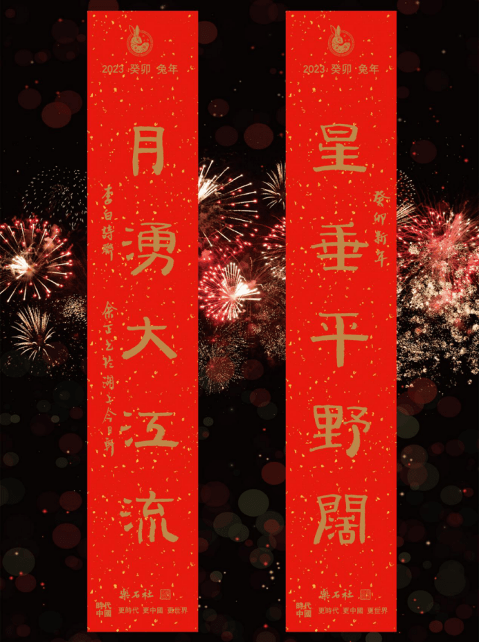 春联:星垂平野阔,月涌大江流。作者:余正(浙江省书法家协会顾问、浙江省社科联·浙派篆刻艺术研究院院长)