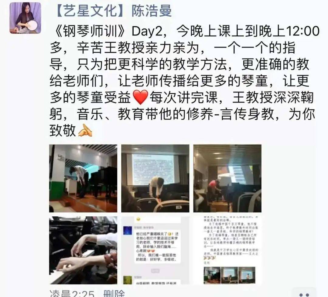 王教授痴迷于钢琴演奏、教学、录音、调律整音与制造,并将40多年来积累的学习、演奏及教学经验,结合多位名家的教学特点,形成完善的钢琴教学体系。近年来,已经使826名教师基本掌握正确的教学方法,间接影响了百万琴童。