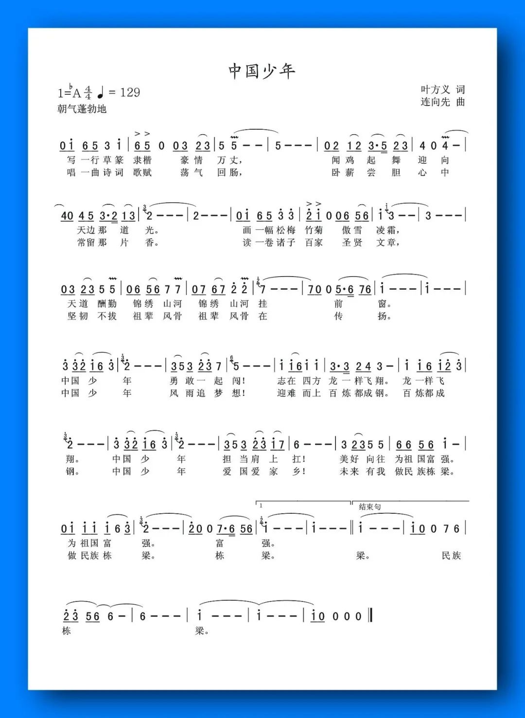 歌词巧妙嵌入“草篆隶楷、琴棋书画、诸子百家、圣贤文章”等中华传统文化意象,用“闻鸡起舞、天道酬勤、松梅竹菊、傲雪凌霜”等励志故事,展示了中国少年奋发有为的时代形象。词句琅琅上口、豪迈铿锵,易于推广传唱。