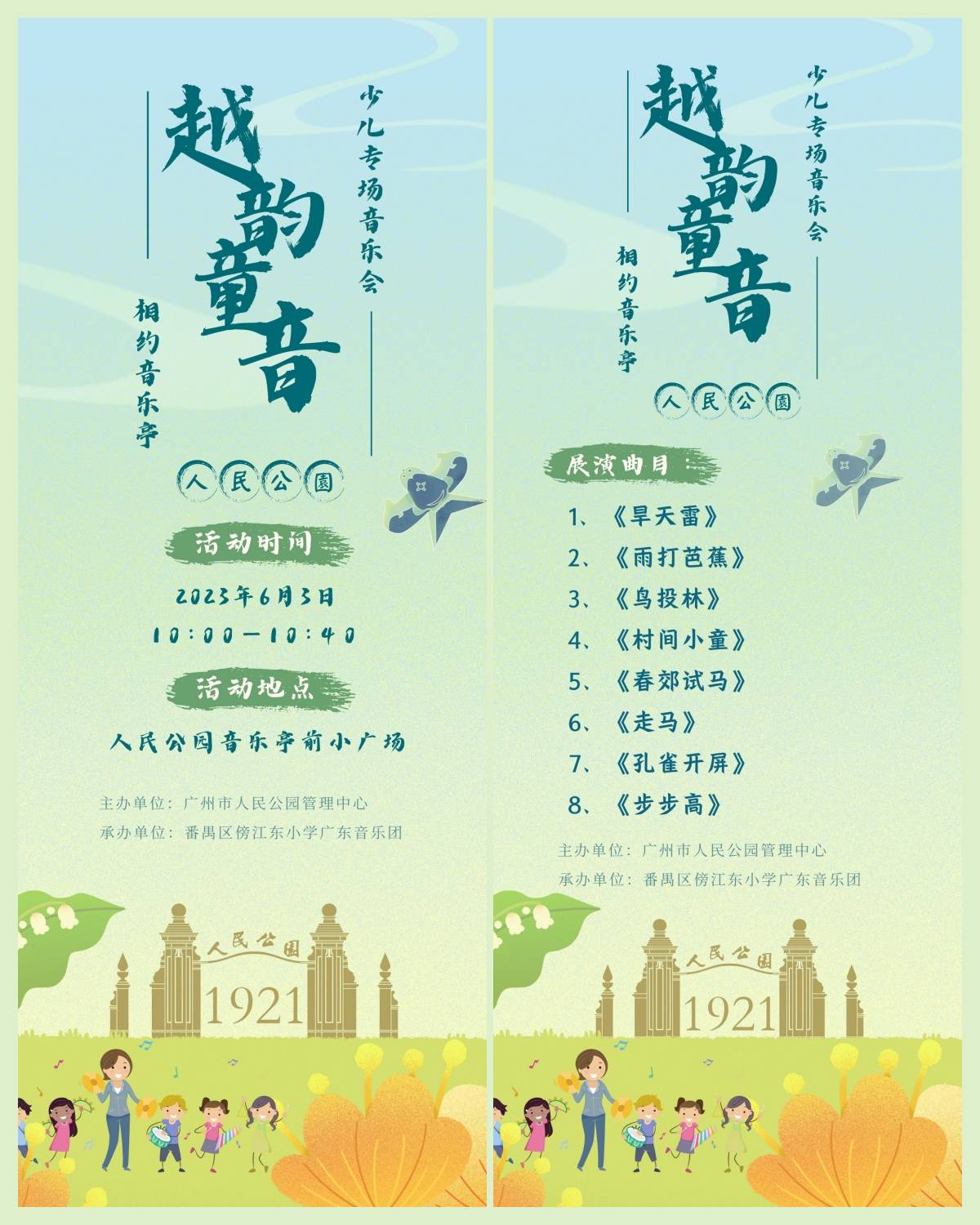 2023年“六一”国际儿童节到来之际,为打造具有广州特色的儿童友好城市,以儿童友好型公园助推高质量发展,人民公园于6月3日上午举办“相约音乐亭”之“越韵童音”少儿专场音乐会。