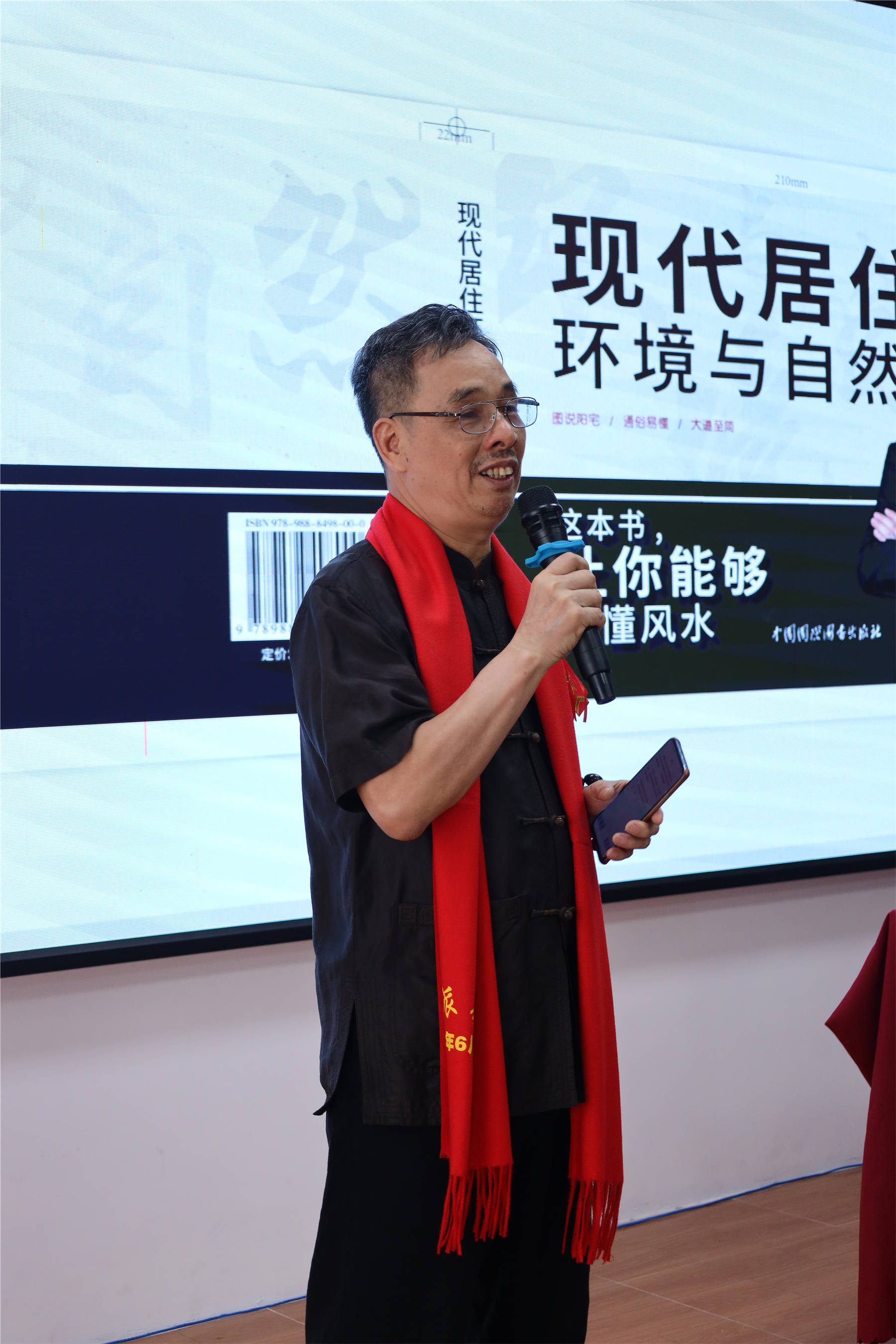 在新书发布会上,文江勇讲述了著作出版的感言。他说,首先感谢出版社有关人士的厚爱,感谢各位同仁友人的关注和支持,感谢今天到来的领导嘉宾!文江勇介绍说,出这本《现代居住环境与自然》著作是他一直的心愿,这本书准备的时间很长,但出版印刷的过程很顺,顺的是这次遇见一位有出书经验的茶文化名家正在深入研究国学的黄建璋先生,通过结识,相互交流,形成知己投缘,在黄建璋的帮助下,终于实现了自己多年的愿望。这本书的定性是“图说阳宅,通俗易懂,大道至简”;作品的亮点,这是一本,让人能够读懂风水的现代居住环境与自然学。