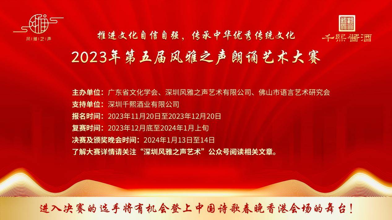 为进一步提升“风雅之声朗诵艺术大赛”的文化内涵,活动规格、艺术品质与活动影响力,切实擦亮广东朗诵艺术亮丽品牌。深圳风雅之声艺术有限公司联手“全国优秀社会组织”广东省文化学会,将充分发挥广东省学会强大的影响力、高端人才智库、活动品牌优势,共同打造“风雅之声朗诵艺术大赛”项目。