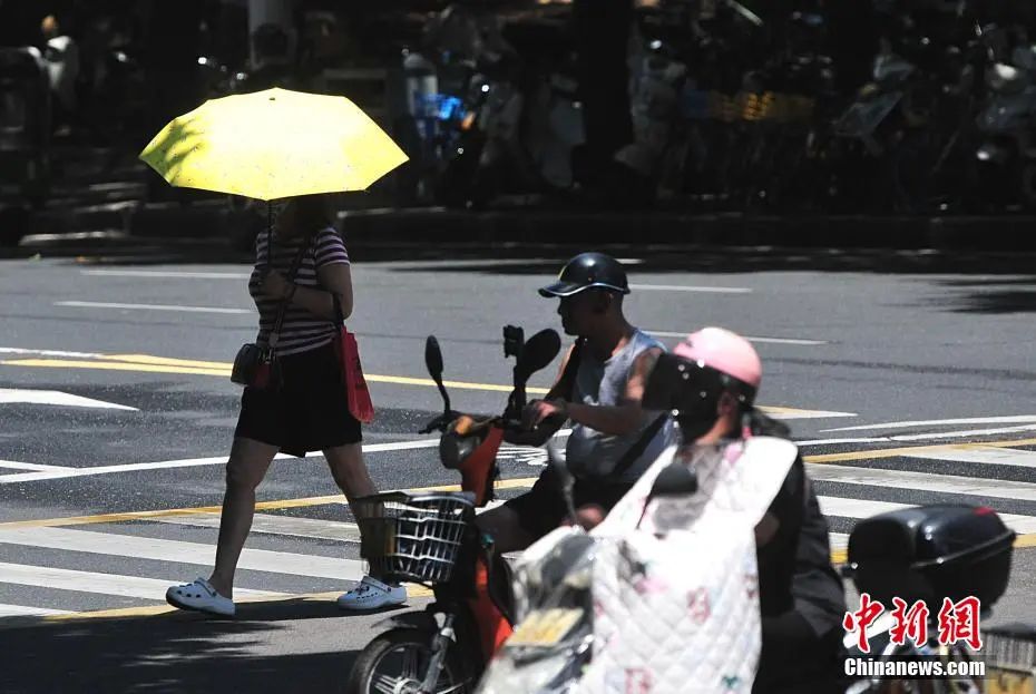 资料图:烈日下出行的人们。中新社记者 张斌 摄