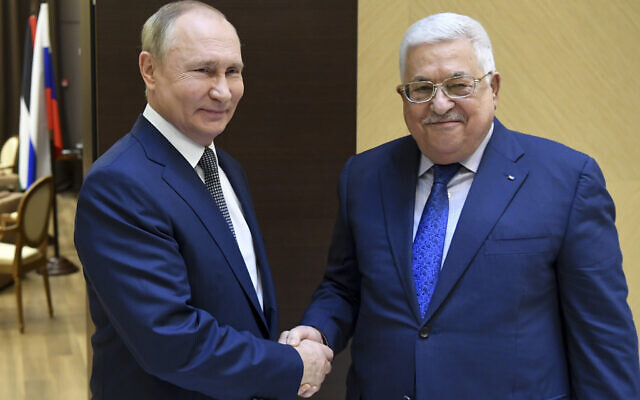 资料图:2021年11月23日,俄罗斯总统普京(左)和巴勒斯坦民族权力机构主席马哈茂德·阿巴斯在俄罗斯黑海度假胜地索契的合影 图自俄媒