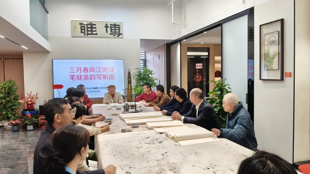 【广州讯】2025年3月20日,正值江南春意盎然之际,广东省侨界作家联合会书画院张文峰院长一行以"三月春风江南绿、笔健墨韵写新图"为主题,于白云区黄边新馆址隆重举办2025春季书画雅集活动。省侨作联秘书长过琮瑗、书画院副院长龙集洪、李著豪、秦柏柳、丁洪文、秘书处程磊、崔艳颜、陈琼霓、肖关明等,共20几位老师参加活动,常务副院长龙集洪亲自接待,此次活动既是新馆的揭牌盛典,也是海内外侨界艺术家共襄文化盛举的雅聚,吸引了几十名书画名家、文化学者及艺术爱好者参与。 群贤毕至启华章,侨界共筑文化廊,活动由书画院秘书长程磊主持。