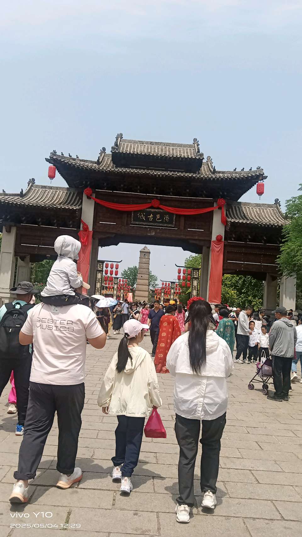 \ 七律·五一节看孙儿一行游洛邑古城(下平八庚)