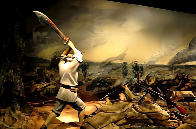 率领他威镇敌胆的五百名大刀敢死队勇士们,一个个怒目圆睁,杀声震天,跃马挥刀,冲向敌阵。直杀得丧魂落魄的日寇尸横遍野,血流满地。