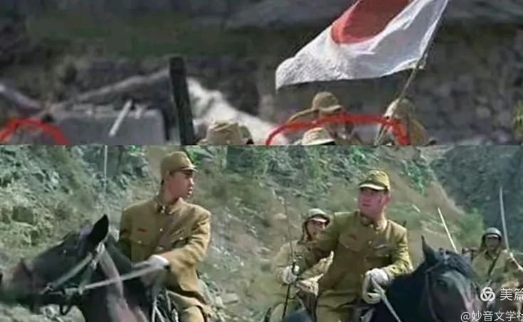 猴子团小鬼子们在一面太阳旗引领下,在猴子团长挥舞战刀催促下,打马狂奔……