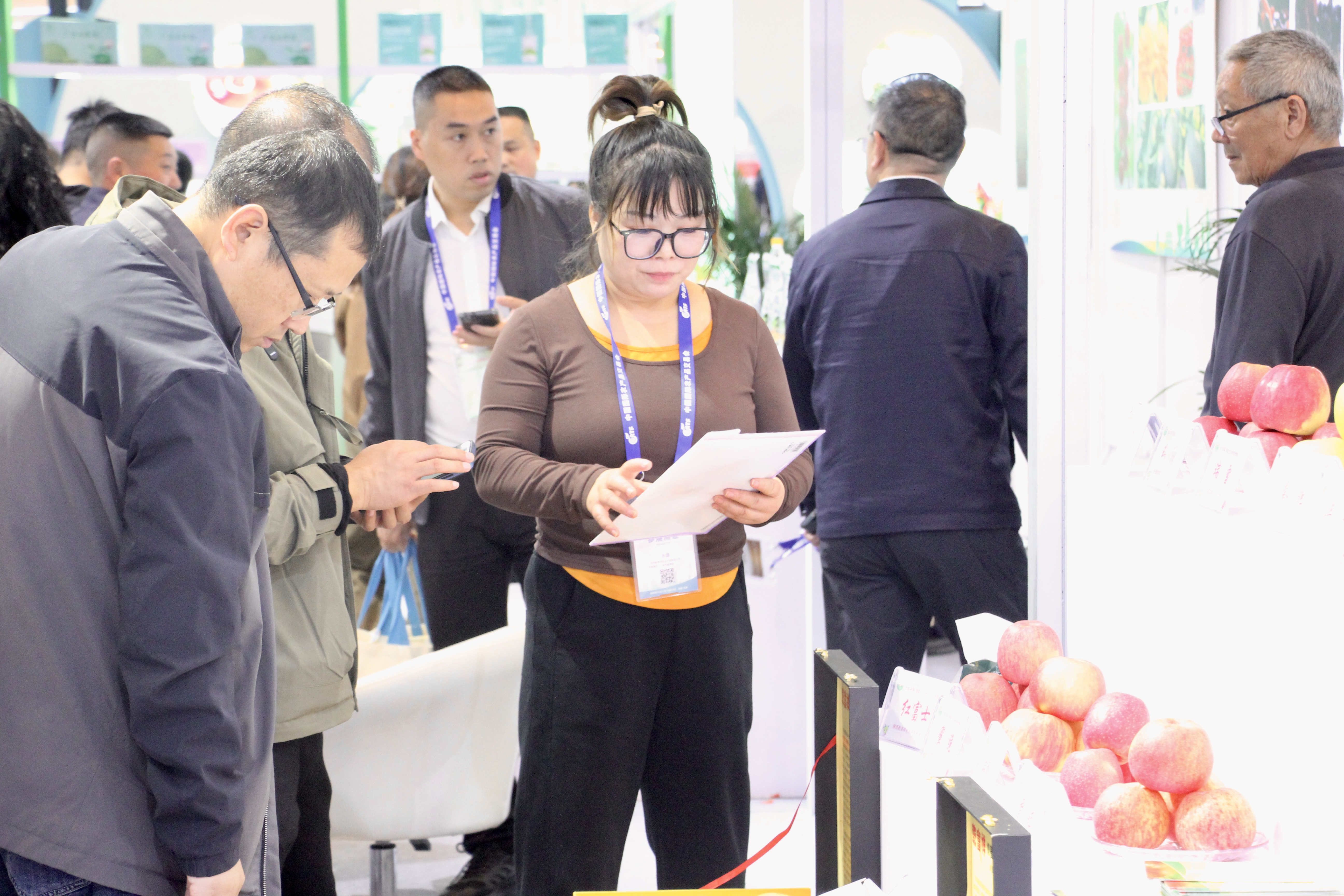 优生禀赋筑根基,好果源自好水土。在长武的展位上,秦脆、瑞雪、瑞阳等长武苹果新优品种整齐陈列,鲜红的果皮、饱满的果型,引得过往客商纷纷驻足。“这苹果甜脆多汁,果然名不虚传!”来自天津的采购商王先生刚尝完一块秦脆苹果,便立刻向工作人员询问起供货细节。
