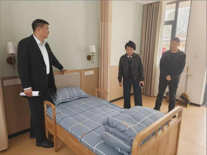 县民政局局长高晓琴实地调研服务站设施配置,细致查看休息室、活动区与医疗角,亲切慰问老人并致以节日祝福。