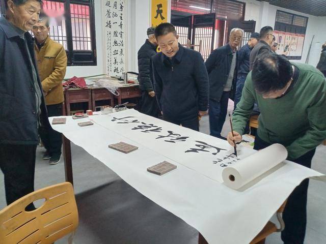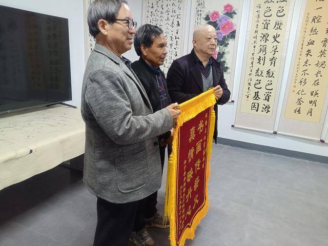 随后,副院长周宁生博士代表书画院庄重授牌,正式将中高村确定为上阳宫书画院研学基地。受赠方满怀感激之情,向书画院赠送锦旗以表谢意。同样身为副院长的军转干部李振堂指出,中高村作为先烈故乡与文化之村,拥有深厚的红色底蕴和文化根基,应在红色文化建设上投入更多精力,随后他激情宣布现场笔会正式开启。