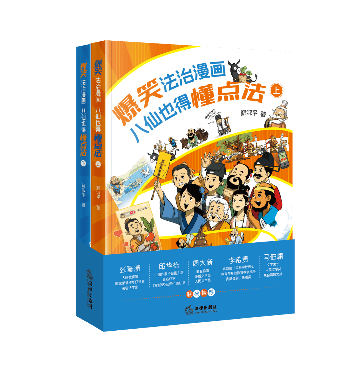 “人民教育家”国家荣誉称号获得者,著名法学家、中国政法大学终身教授、法学界泰斗张晋藩先生,中国作家协会副主席、著名作家邱华栋先生,著名作家、茅盾文学奖、人民文学奖等奖项获奖作家周大新老师,教育家、北京第一实验学校校长、教育部基础教育教学指导委员会副主任委员李希贵先生,文学鬼才、著名作家、《长安十二时辰》《太白金星有点烦》《大医》《长安的荔枝》作者马伯庸先生等法学界、文学界、教育界的专家学者联袂推荐《爆笑法治漫画——八仙也得懂点法》。