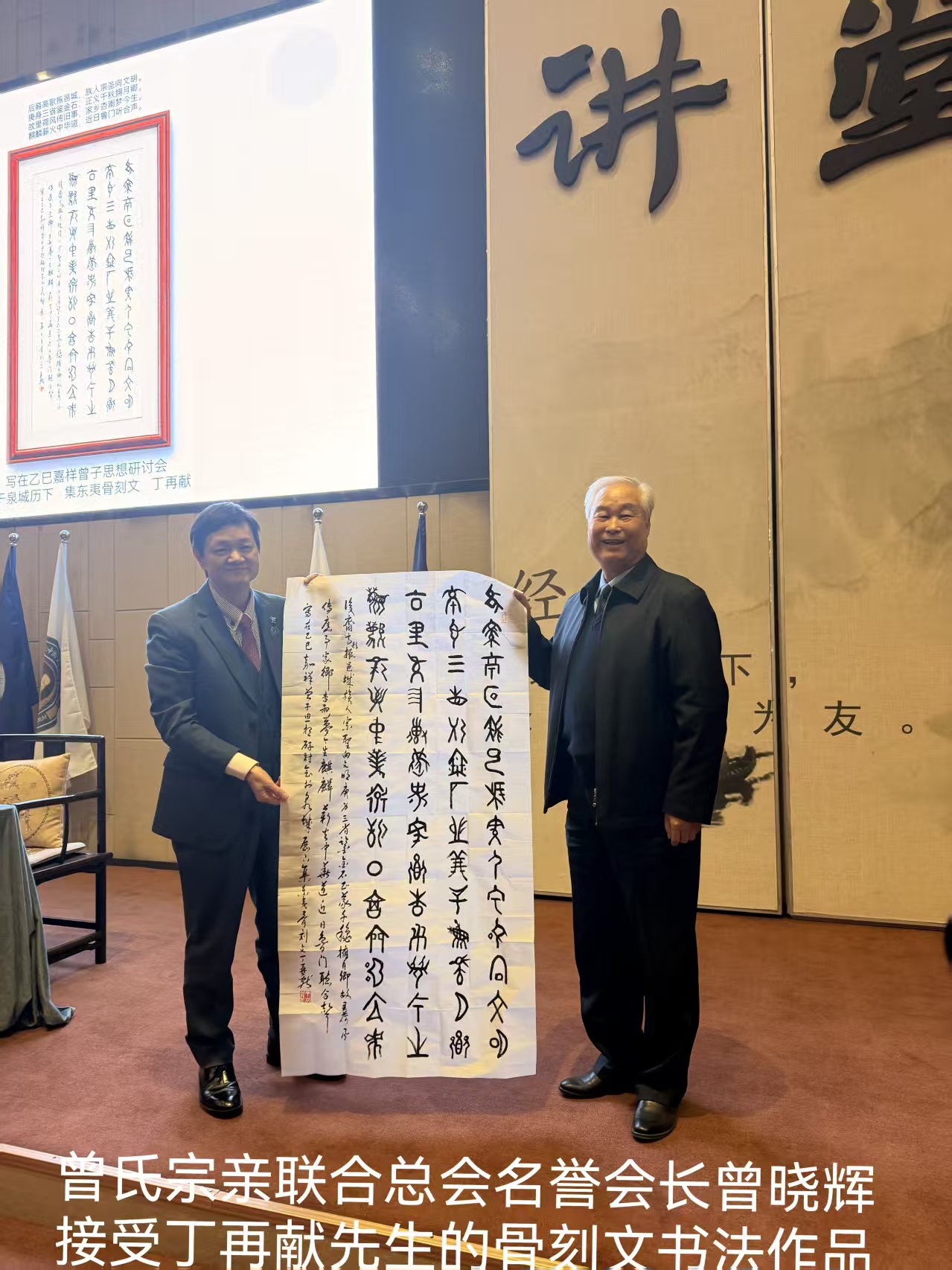 近日,宗圣曾子二千五百三十周年祭大典在山东省嘉祥县隆重举行。在这场以“继往圣绝学,续千年文脉”为主题的盛会上,著名文化学者、东夷骨刻文字破译宗师丁再献先生提交的《东夷文化,宗聖薪传》学术论文及骨刻文书法作品成为焦点。
