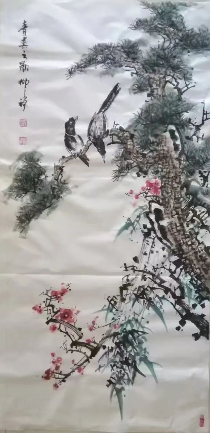 5. 国画深耕:90年代后专攻国画,山水、人物、花鸟无一不精,梅花、荷花特写堪称一绝,梅骨清奇、荷韵雅致,赏心悦目,其梅花被誉为「天下第一梅」;