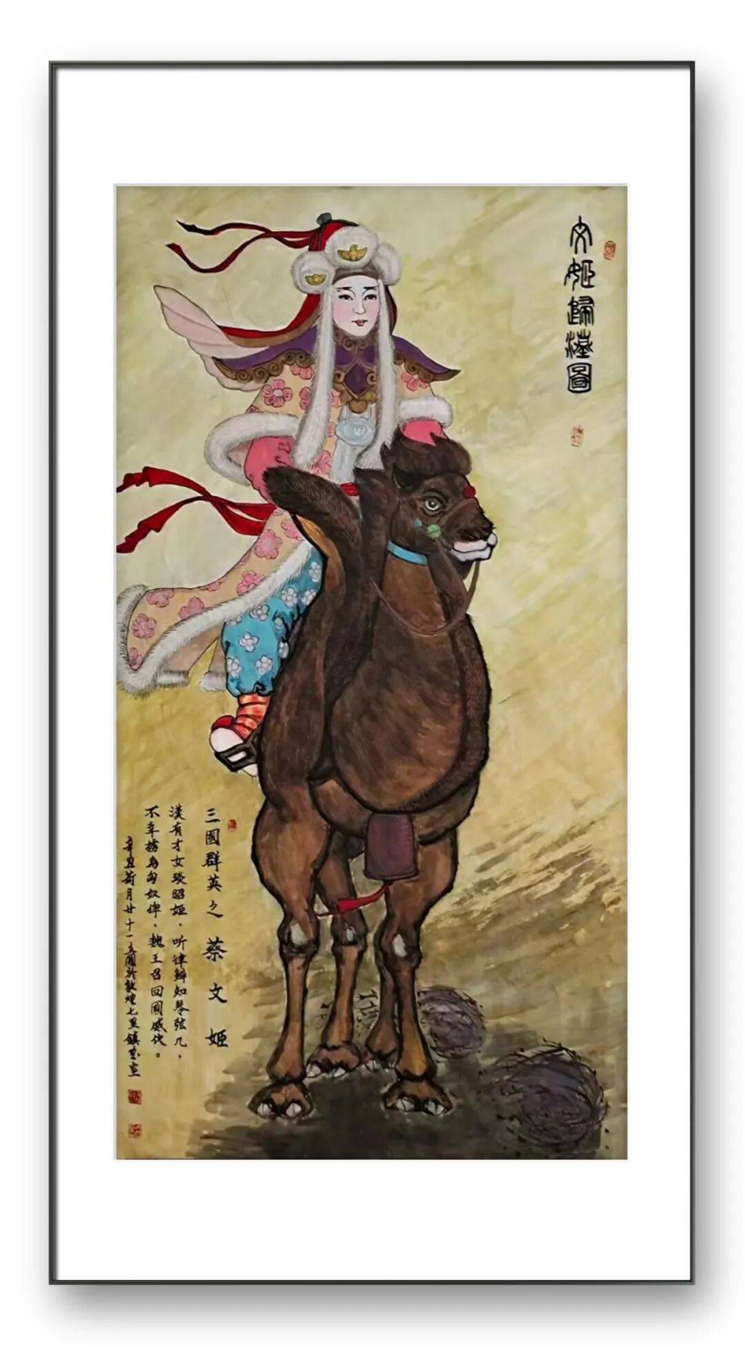 题材的丰富性与内涵的深刻性,是张立国老师人物画的另一大特色。他的创作题材涵盖古今中外,既有古典仕女、历史名人,也有当代人物、宗教形象,甚至融入了四国文化元素,每一幅作品都承载着深厚的文化底蕴与人文情怀。在古典人物创作中,张立国老师不仅注重还原人物的外在形象,更注重挖掘人物的内在精神与历史内涵,将历史典故与艺术创作相结合,让作品具有了超越视觉美的文化价值。他笔下的昭君出塞图,以表妹为模特,生动刻画了王昭君抱琵琶、托心明月的形象,既展现了昭君的美丽与温婉,又凸显了她为安疆保国、民族团结而牺牲自我的高尚情怀,画面中苍茫的朔漠、前行的骆驼与昭君的身影相互映衬,将“一去紫台连朔漠,独留青冢向黄昏”的悲剧美感与家国情怀展现得淋漓尽致,成为经典之作。