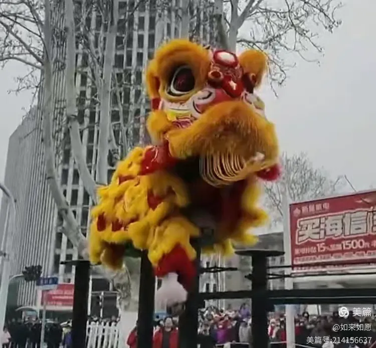 狮舞龙腾鼓乐鸣,人潮攒动只闻声。