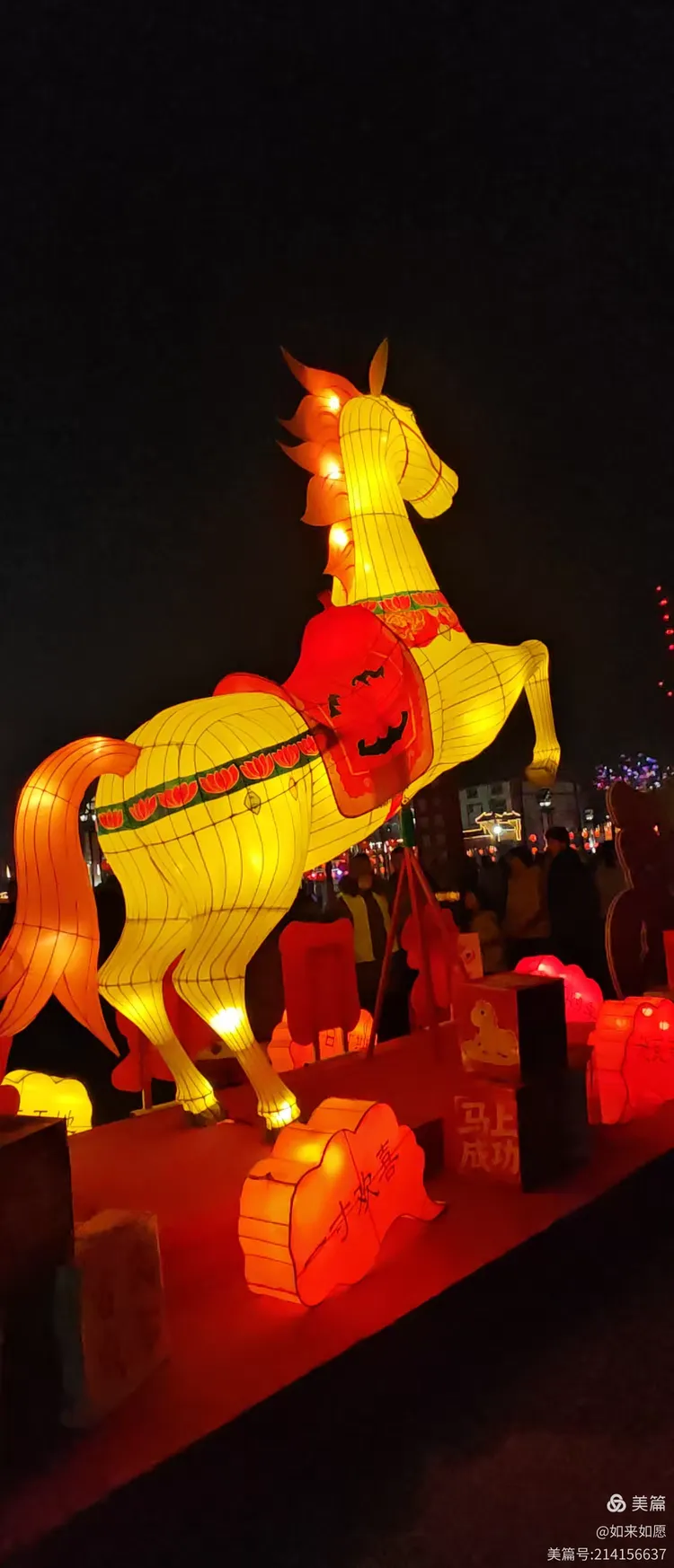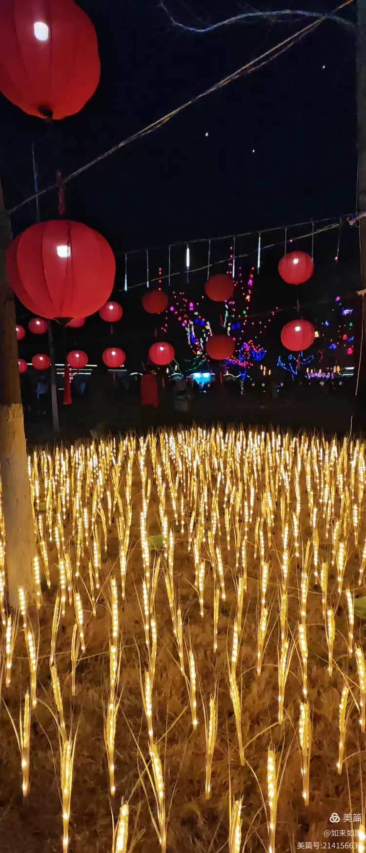 麦灯十亩铺地亮,笼彩千条遍挂台。