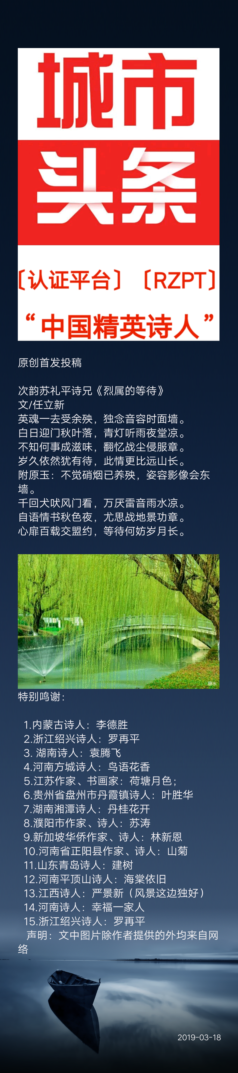 平顶山头条向全球发布诗人任立新精品诗歌