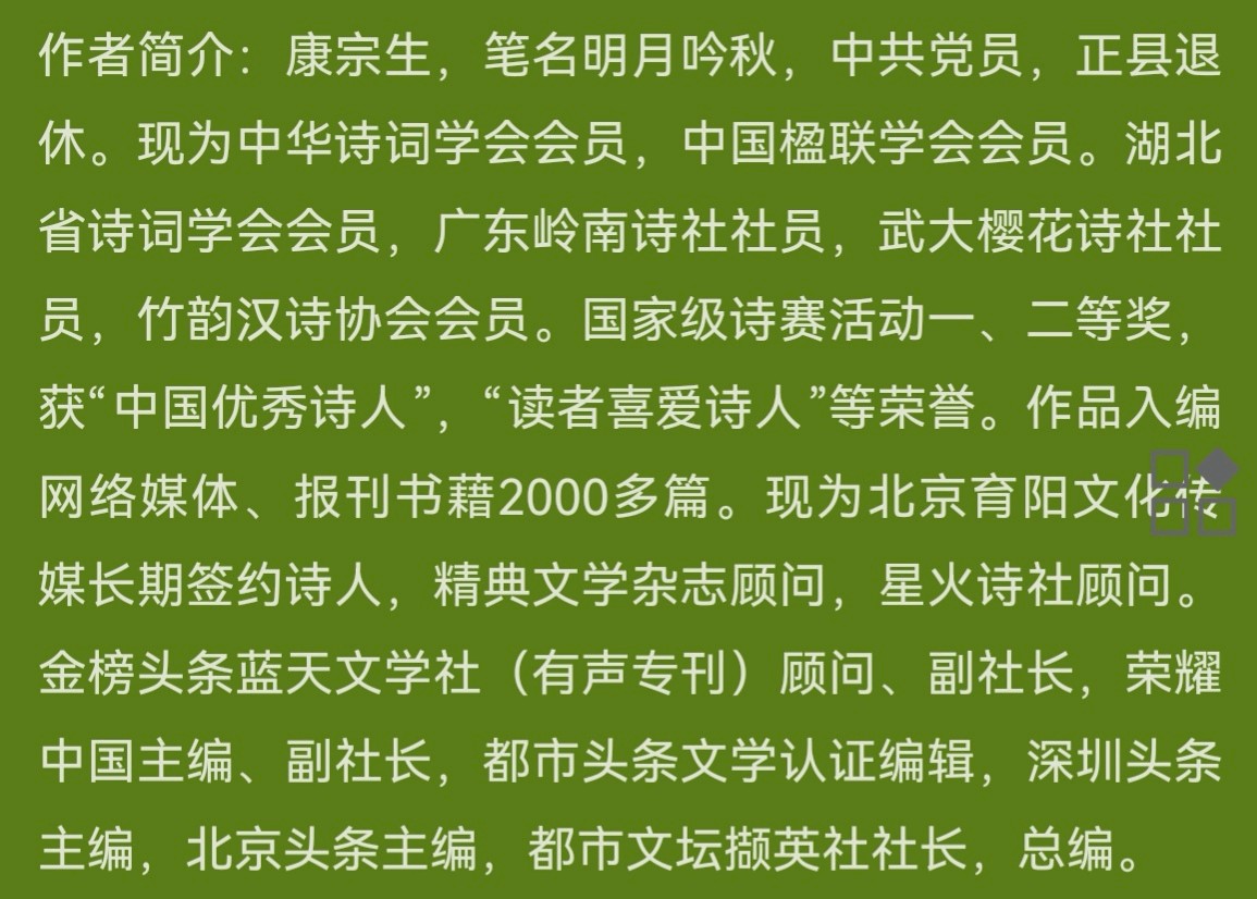 【都市文坛撷英】七律·次韵北大山先生《醉题三秋》作者/康宗生