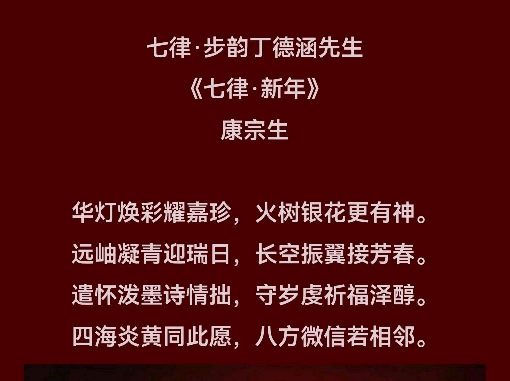 七律.喜新春依韵丁德涵先生《七律.新年》 文/杜云燕