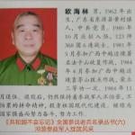 人生岁月 投笔从戎 诠释善心 :欧海林,公元1962年冬末出生于广东省河源县黄村镇三洞村连麻简小山村。 求学之路: 8岁时入读离家四公里多路程山路的三洞小学暗径分校启蒙小学部,品学兼优评为德智体三好学生。 11岁时就读离家十多公里路程山路的三洞小学小学部,品学兼优评为德智体三好学生。 13岁时就读离家十多公里路程山路的三洞小学初中部,品学兼优评为德智体三好学生。 15岁时就读离家十四多公里路程的黄村中学高中。其间就读黄竹经分校半农半读求学之路。在高中学习期间曾参加全校书法比赛获奖第一名。利用课余时间为学校出黑板报,钢笔字刻划试卷考题印刷。德智体三好学生,高中毕业。文革后初次恢复高考因差5分落榜。 投笔从戎: 17岁报名参军,体检全面合格,因年龄限制没有如愿。过一年1980年如愿入伍到广州军区41军123师368团6连,在部队刻苦训练,严格要求,掌握军事技能成为一名机枪手,参战于1981年5月广西中越边境著名法卡山收复战。战后回贵县军营,服从命令被安排到旺岭江边抽水机船特殊工种,成为一名船长兵,负责部队生产基地安全供应用水用电,责任重大,其间自学掌握水泵维修技术,电力安全操作技能,顺利完成上级交给的艰巨任务。1984年4月参加广西中越边境靠茅山拔点作战,荣立三等功一次,1984年11月卸下戎装,光荣退役。退役后安排到叶潭供电所工作。离职后仍然保持着共产党员参战军人不怕苦,不怕累的拼命精神,投身祖国现代化建设,继续为国家强盛而努力奋斗,努力工作。 退伍不褪色,不忘初心。兼职都市多家新闻全媒体外编记者,编辑提供稿件。 发挥智慧网络发贴至华哥信箱: 陈建华书记(2007年)在河源任职期间做了一些功德无量的事。陈书记曾说:网络不是虚拟的,是实在的,我收到的来信没有一封是胡说八道,99.9%都是实实在在反映问题的。现在当领导最担心“眼不明,耳不聪”,听不到真实情况。开实名邮箱拓宽了我听取民意的渠道。 陈书记虽然在外面忙碌了整整一天,晚上也不忘登录奥一网“网络问政”平台“有话问河源市领导”栏目。登录平台后,他还认真浏览了网友写给他的建言和提问,进行了回复。奥一网的负责人说,陈建华成为了第一位在奥一网“网络问政”平台实名回应网友的河源市委书记, 他开通的“华哥信箱”在当地很有名气。 打开河源网上信访公仆信箱:(http://gpxx.heyuan.gov.cn/front/index.jsp),便可以看到醒目的“华哥信箱”,上面还有陈书记的照片,网站最下端是陈书记写的一首诗:社情民意一线通,学习交流两从容。网上静听悄悄思,一字一页记心中。在河源慢慢就有了这样的说法:“到政府信访不如去‘华哥信箱’发帖,让华哥来帮忙解决”。 根据民政部民发[2007]102号《民政部关于落实优抚对象和部分军队退役人员有关政策的实施意见》。一封封网络问政信,关于河源参战老兵怎样有效落实解决待遇相关问题实施方案,发贴至华哥信箱。引起了陈建华书记高度重视,不久终于市政府出台政策解决参战老兵相关问题,关键性为河源参战老兵优抚做出重大贡献。 2010年河源市落实有关政策解决了已失业的参战老兵的社保及医保。 河源市政府印发《河源市抚恤定补优抚对象医疗保障实施办法》(下称《办法》),规定各县区要安排好优抚对象医疗补助资金,用于优抚对象医疗保险参保缴费、住院医疗补助和临时医疗补助,确保优抚对象本人的医疗待遇高于当地的平均医疗水平。《办法》从2015年8月1日起实施,有效期5年。凡是河源户籍且在本市领取定期抚恤金或定期定量补助的退出现役的残疾军人、烈士遗属、因公牺牲军人遗属、病故军人遗属、红军失散人员等均为抚恤定补优抚对象,都能享受到上述补助政策。 自2014年8月1日起,河源市就出台相关政策(包括市区和县城公共汽车)。对优抚对象乘坐河源城市公共汽车实行免费优待。 此次明确优抚对象免费乘坐市区城市公交汽车范围,进一步细化了优抚对象能享受的优惠政策,依法保障和维护了优抚对象的基本权益,营造出关心优抚对象的良好社会氛围。 河源市重点优抚对象每月免费10吨生活用水(专属河源市优抚政策)。 河源市重点优抚对象每年免交一半有线电视费。 河源市重点优抚对象畅游河源市各景点,公园大门票免费。 为困难战友捐款? 慰问烈士家属: 邹源高战友:2011年7月患了鼻咽癌在广州三九脑科医院治疗,差点因交不起3万多元的治疗费而放弃治疗,“一方有难,八方支援”是中华民族的美德,更是我军一直保持的优良传统。为发扬部队优良传统,战友互助精神[河源市123师黄村籍]李东华、何坤明、邱木根、邱红清、欧海林、钟贵明、邬志雄等战友组织捐款6000多元慰问了邹源高战友,经过精心治疗,身体基本康复。 2016年河源123师战友群为河源老兵李云山重病爱妻捐款23000元。 2016年河源123师战友群为钟桂新妻子重病捐款。 2019年河源123师战友群为程坚强战友母亲重疾捐款13850元。 2018年河源123师战友群为张雪忠战友父亲重疾捐款26933.33元。 2018年河源123师战友群及原所在连队为黄添华战友重疾妻子捐款。 2018年河源123师战友群为欧阳浩生战友重病父亲捐款16223元。 2019年河源123师战友群为曾海洪战友重病爱妻捐款16500元。 2020年河源123师战友群为周朗战友家受特大水灾(2019.6.10)捐款42000多元。 2020年河源123师战友群为谢保定战友母亲