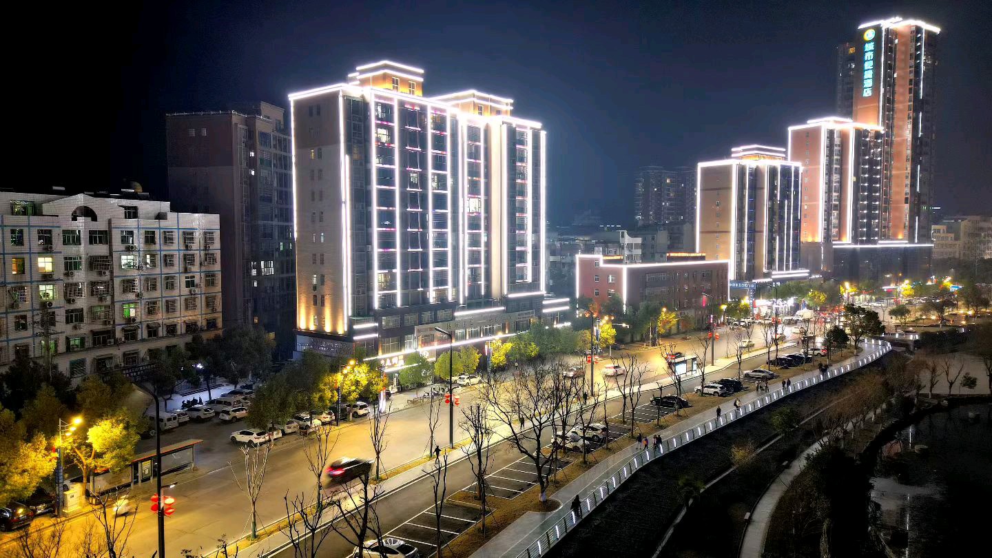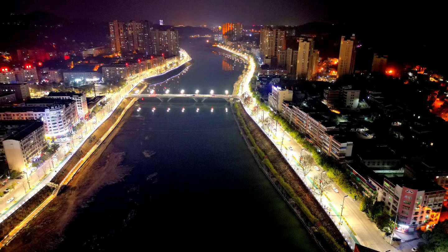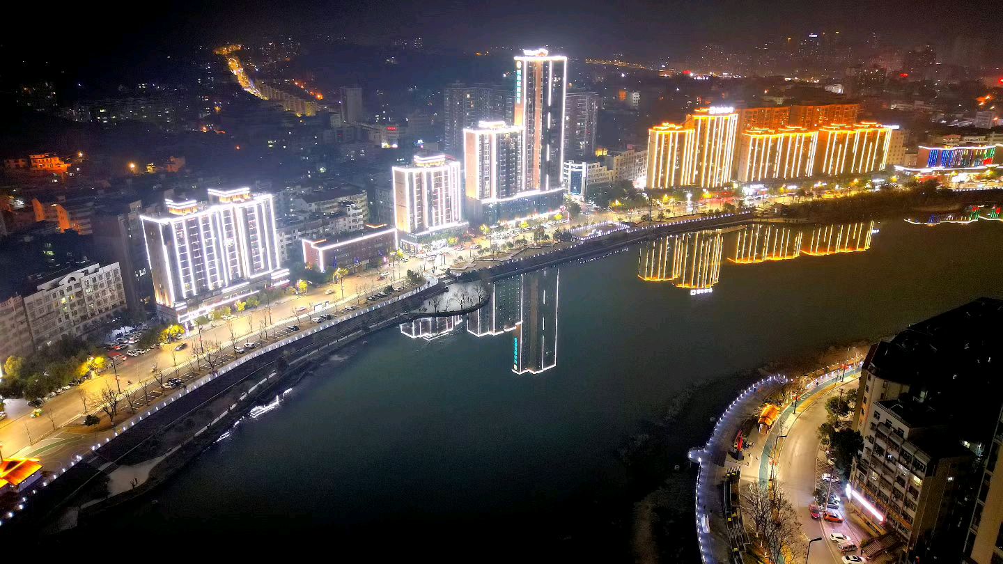 航拍义水外滩夜景