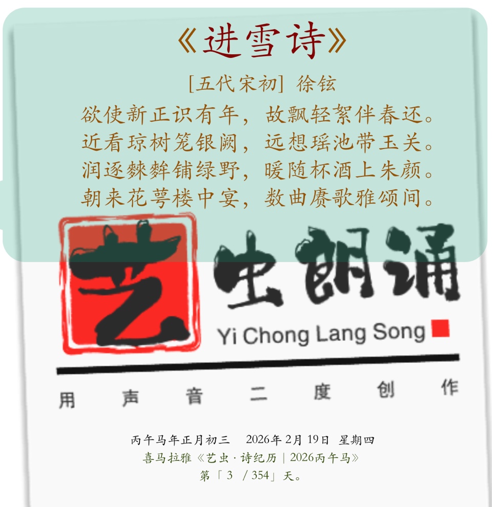 丙午马3.艺虫日读古诗词《进雪诗》[五代宋初] 徐铉