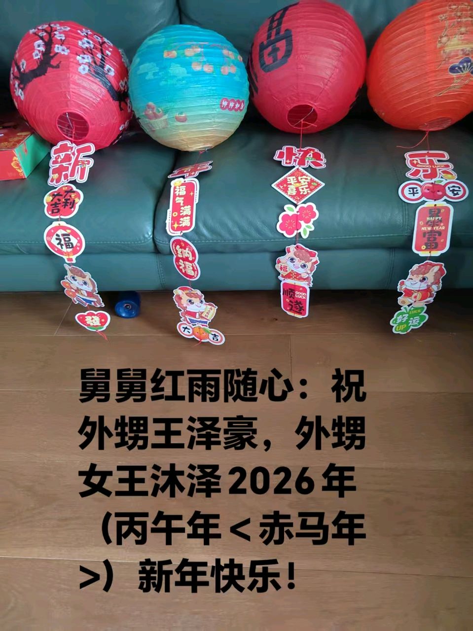 舅舅红雨随心:祝外甥王泽豪,外甥女王沐泽2026年(丙午年<赤马年>)新年快乐!