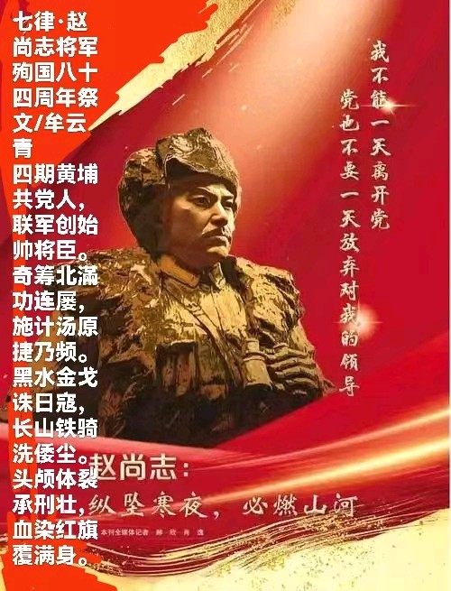 【荣耀中国】文学社*七律·赵尚志将军(1942年2月12日)殉国八十四周年祭文/牟云青(山东龙口)