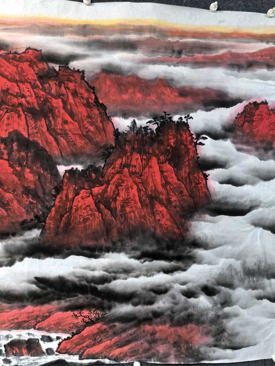 春节特刊 | 红岱凌云启新岁!孙华英丈二巨制《赤岱凌云》绘就泰山精神新高度