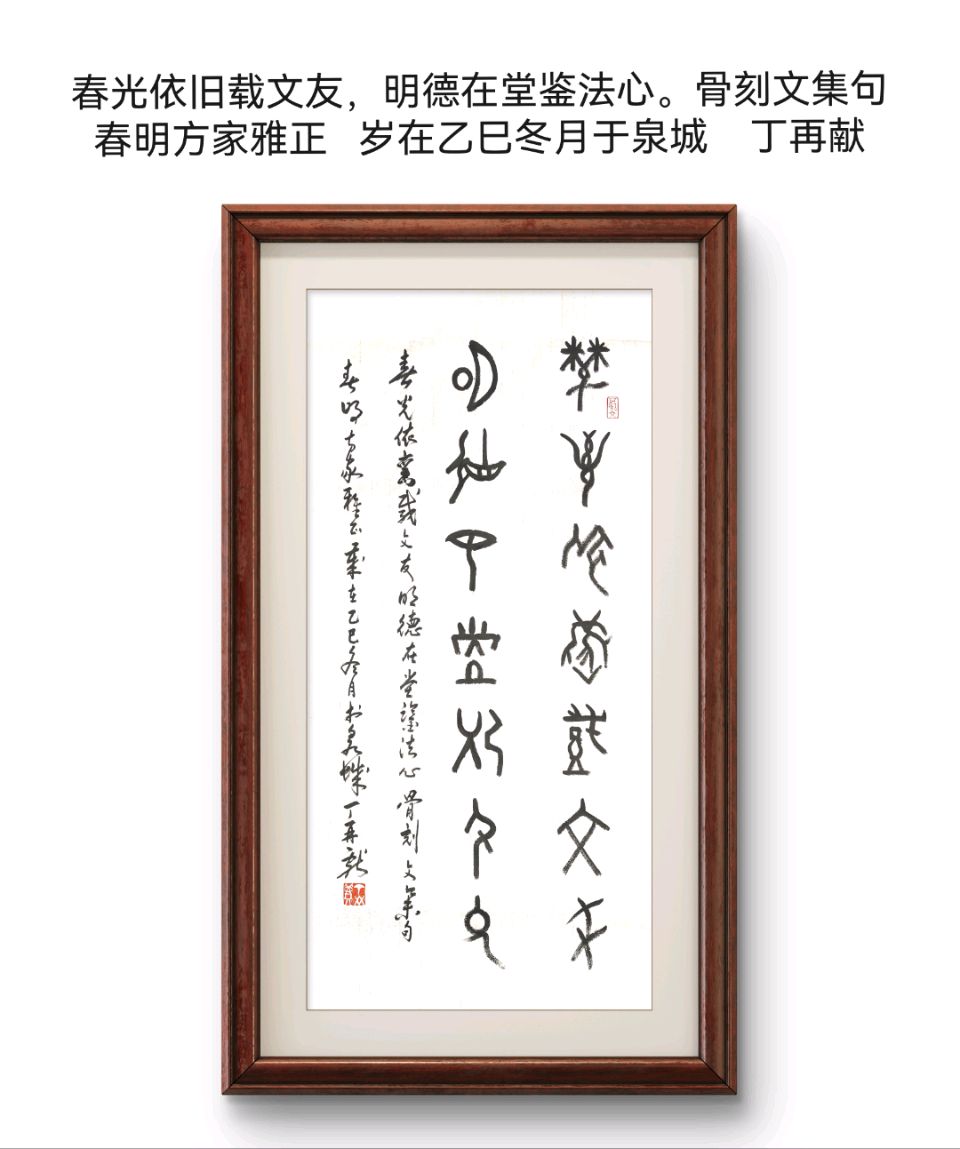 骨刻凝雅韵 联语赠春明——丁再献骨刻文书法赠沂蒙文友冯春明//刘唐山