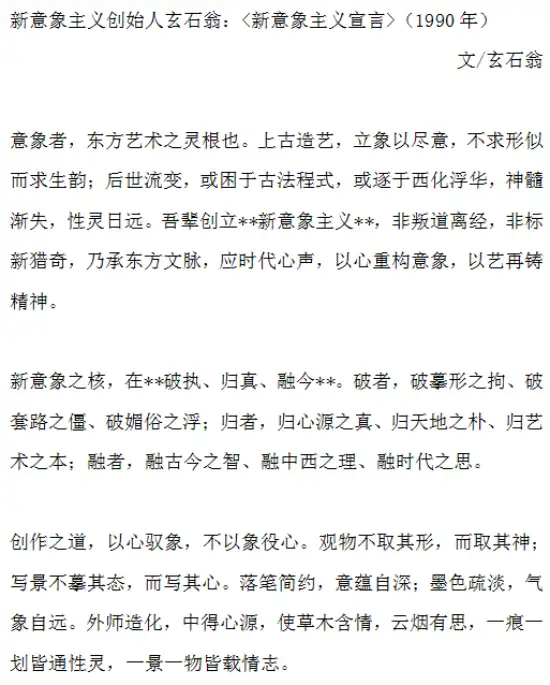 新意象主义创始人玄石翁:<新意象主义宣言>(1990年立)